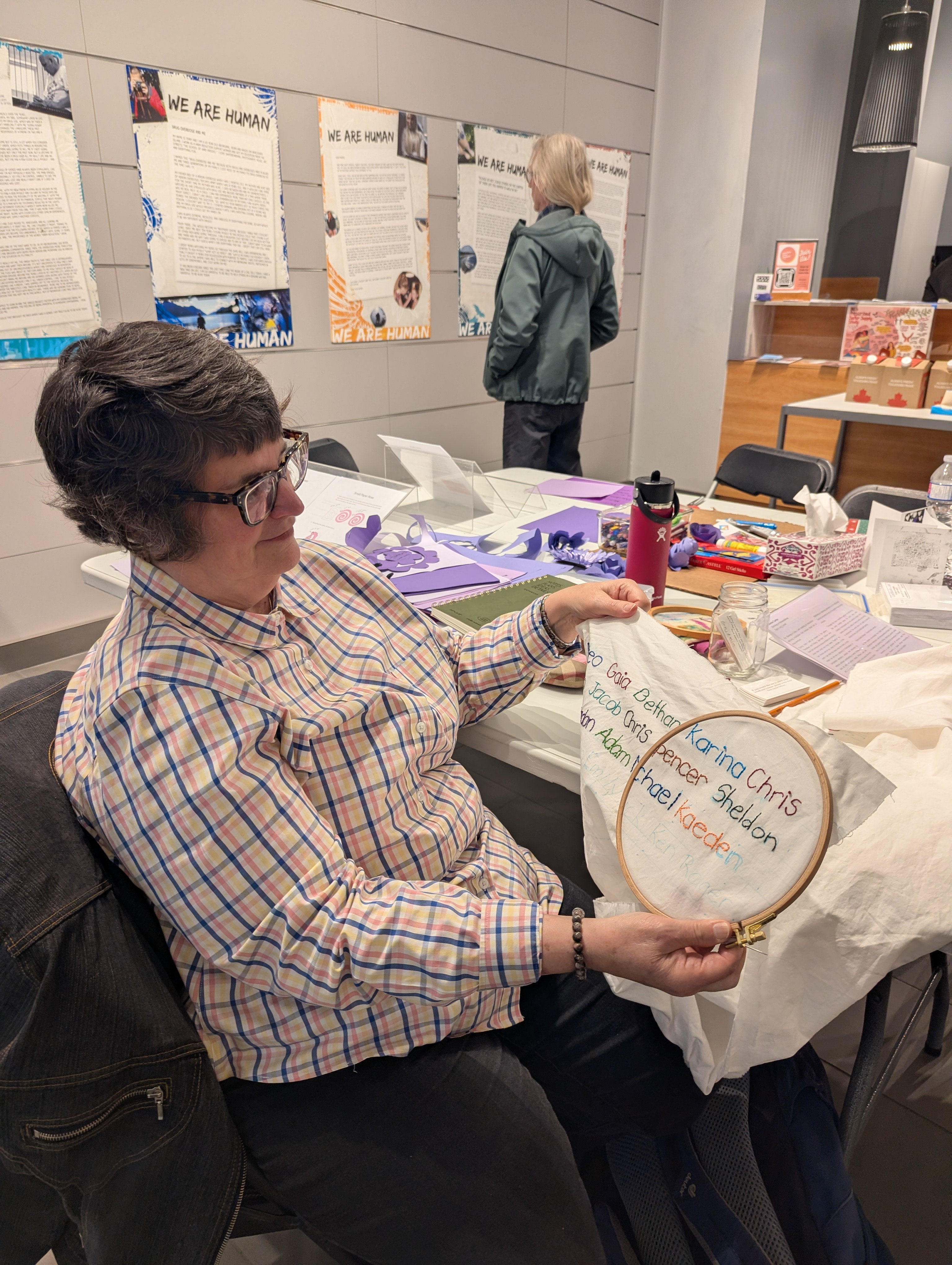 How long might it take to stitch the names of all 18,000+ people lost to BC’s tragic toxic drug crisis in the last decade? The work is underway at the @namingacrisis art installation and exhibit at the Bay Centre, where Connie Carter – a former senior policy analyst with the Canadian Drug Policy Coalition – is hosting “Stitching as Remembrance” sessions for the next two Thursdays (April 16 and 23) from 2-4 pm. People have been dropping by to leave her the names of their loved ones for Connie to stitch, but she invites people to come stitch their own names they want to remember, as she’s using a very simple embroidery stitch that takes only a couple minutes to learn. On this day 10 years ago, April 14, the BC government declared a state of emergency over toxic drug deaths. Come on down to the legislature at 1 pm for the @momsstoptheharm rally and minute of silence marking the tragic anniversary of the declaration. Deaths last year were double what they were when the crisis was declared.